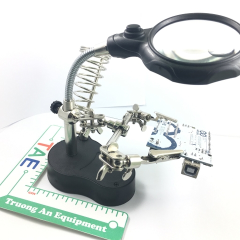 Kính Lúp Hàn Mạch Có Led là dụng cụ hỗ trợ, được thiết kế chuyên dụng hỗ trợ hàn mạch in, được tích hợp đèn led chiếu sáng, đầu kẹp mạch 2 đầu và gá mỏ hàn. Bạn có thể dùng kính lúp để kiểm tra thông số linh kiện điện tử trên mạch in và kẹp mạch in để hàn gắn linh kiện và sửa chữa mạch in.