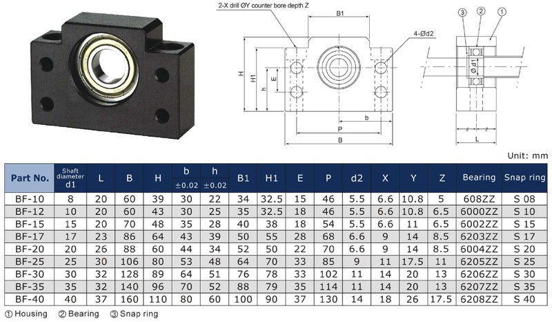 THÔNG SỐ KỸ THUẬT Gối Đỡ Trục Vitme BK-BF