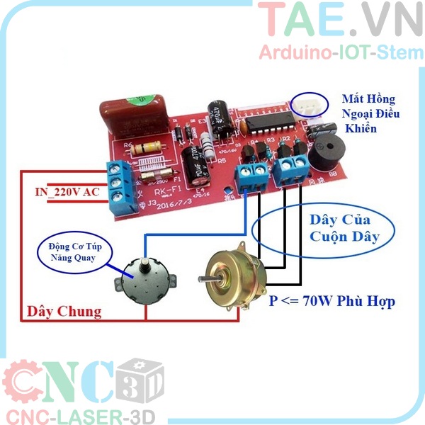 + Điều khiển quạt quay (cần đấu nối thêm động cơ túp-năng)