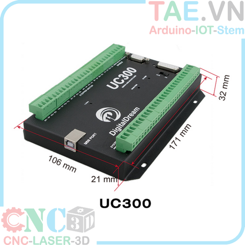 UC300 is a 3-6 axis high-performance motion control card based on MACH3 software. Zhongliantuo Numerical Control Co., Ltd. lasted four years of research, development and debugging, and finally upgraded to this version, with stable performance, high control accuracy, and strong anti-interference ability. The highest output pulse of UC300 is 300Khz, the pulse width is adjustable, and the differential connection can be connected to standard stepping and servo motor drives; UC300 is connected to a computer through a standard USB interface to communicate with the MACH3 software, the operation is simple and reliable, but it is recommended to use shielded cables. Connect to reduce the chance of interference.