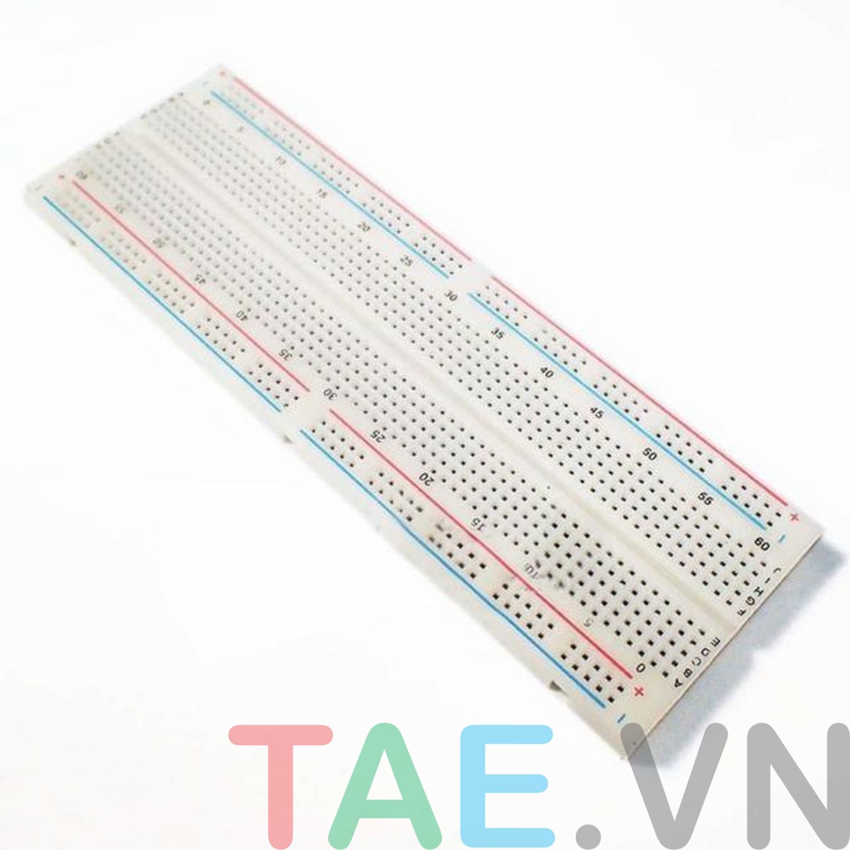 Các hàng cắm trên board có đánh số giúp bạn dễ theo dõi vị trí cắm linh kiện. Board chia thành 200 lỗ cho việc cắm nguồn và 630 lỗ cho việc cắm linh kiện.