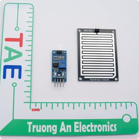 Cảm biến nước mưa sử dụng để phát hiện mực nước, trời mưa, hay các môi trường có nước. Mạch cảm biến mưa được đặt ngoài trời để kiểm tra trời có mưa không, qua đó truyền tín hiệu điều khiển đóng / ngắt rơ le.