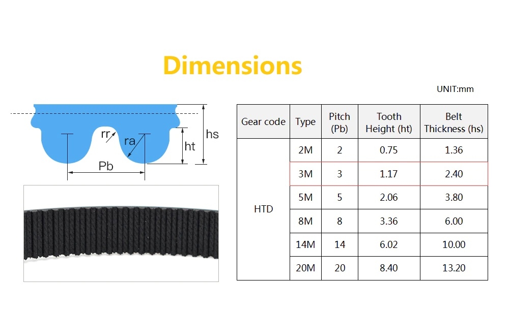 - Bước răng: 3M - 3mm (HTD: răng vòng cung)
