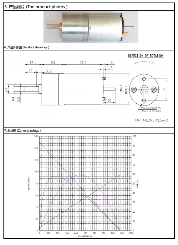 thông số motor: