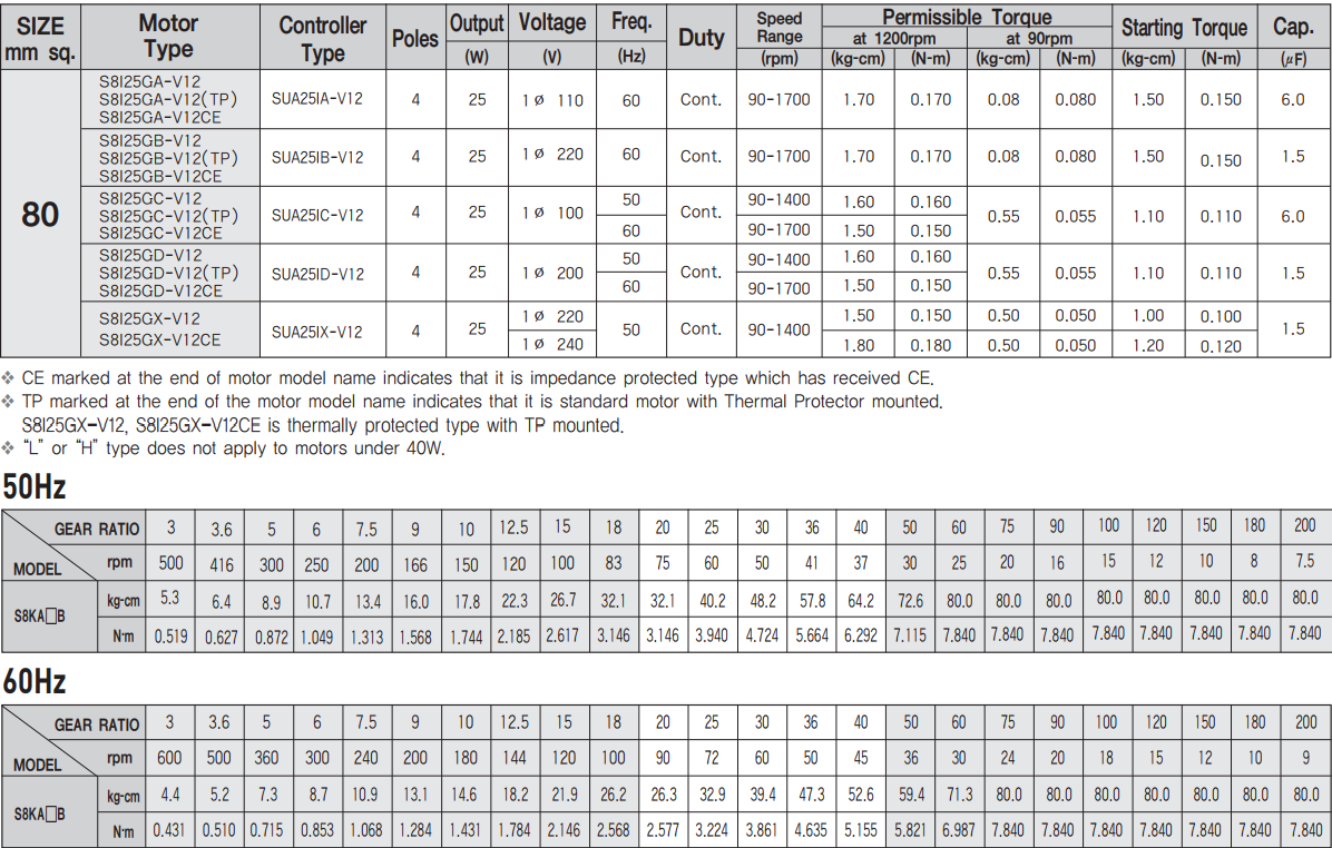 Tài liệu Manual/DataSheet Động cơ giảm tốc AC SPG