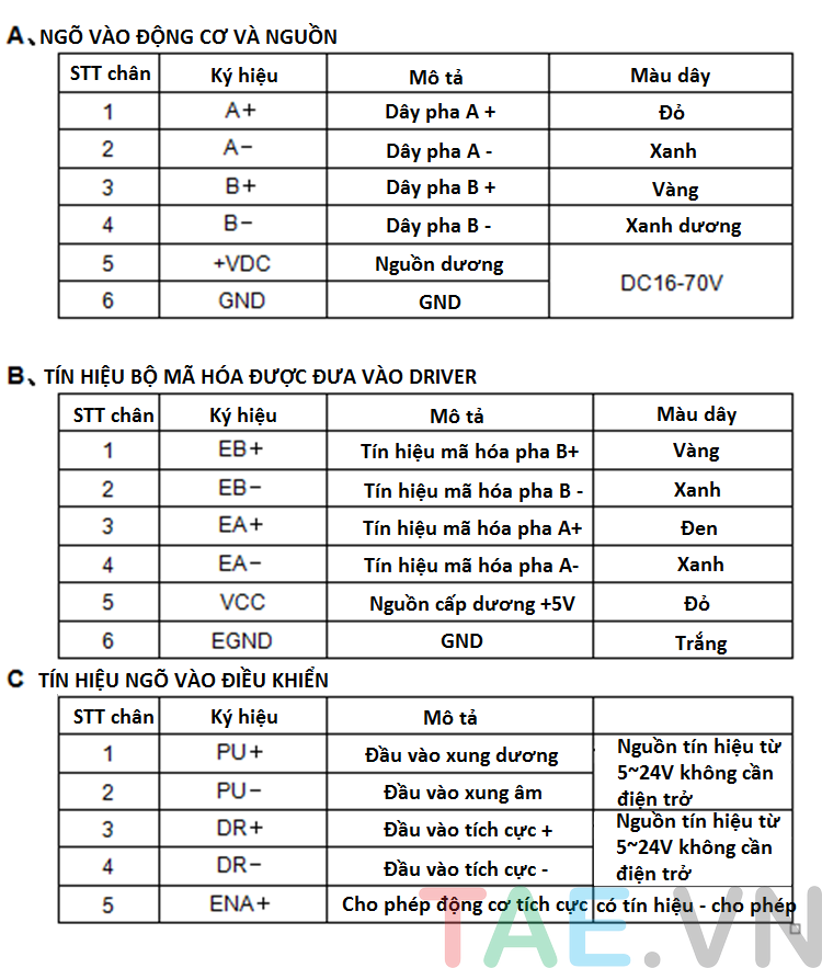 - Tín hiệu xung: tương thích 3.3V/ 5V/ 12V không cần điện trở