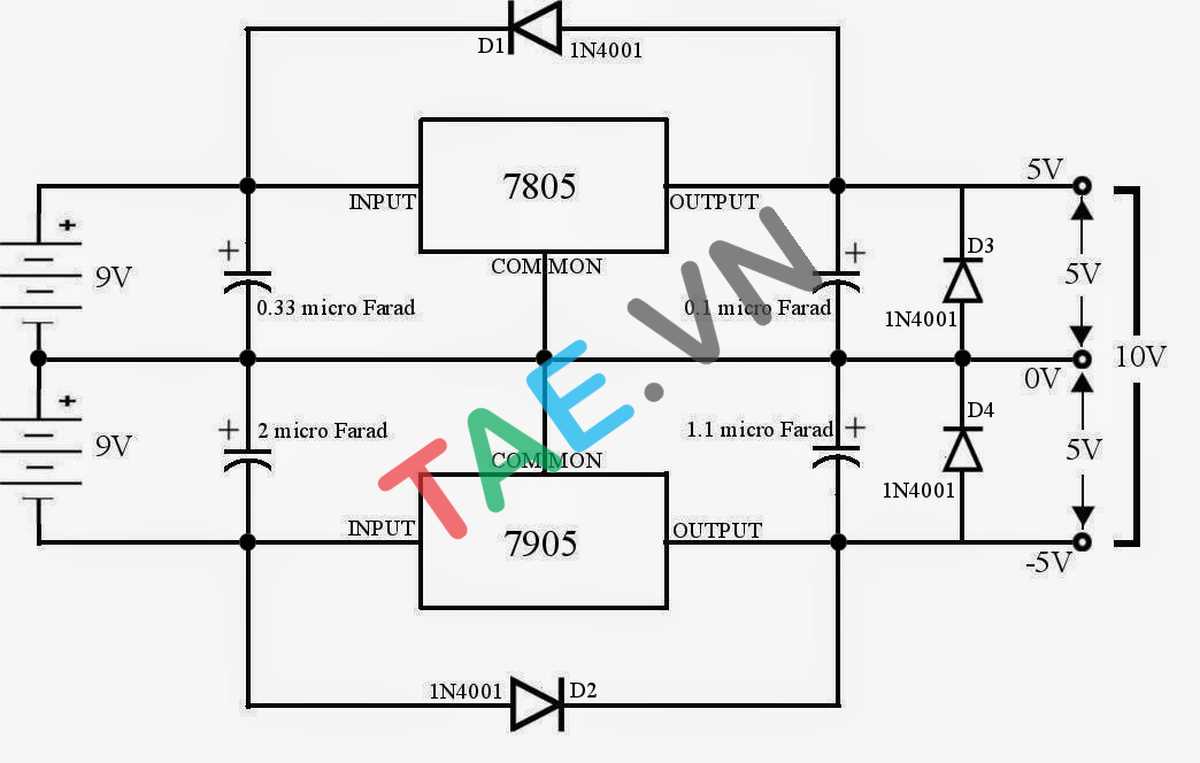 Sử dụng kết hợp IC họ 78xx và họ 79xx để tạo nguồn đối xứng