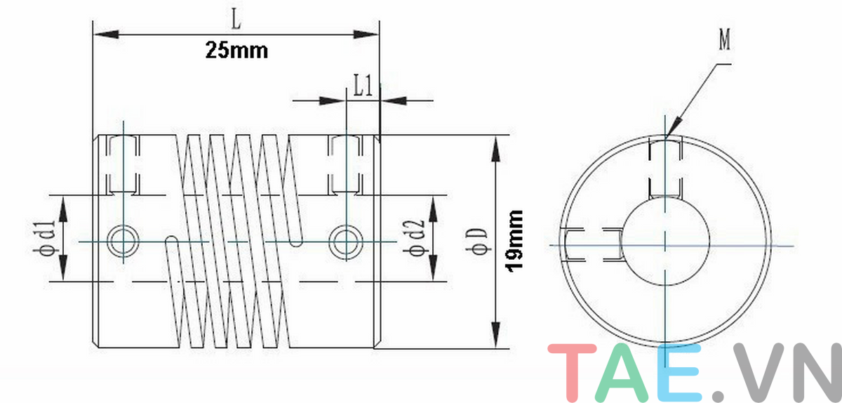 - Đường kính lỗ 2 đầu (d1 x d2):