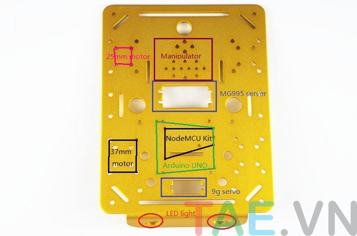 - Sử dụng 2 động cơ giảm tốc 9VDC-150rpm