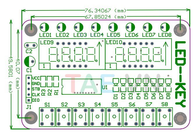 - Mạch điều khiển hiển thị Led & Key TM1638