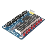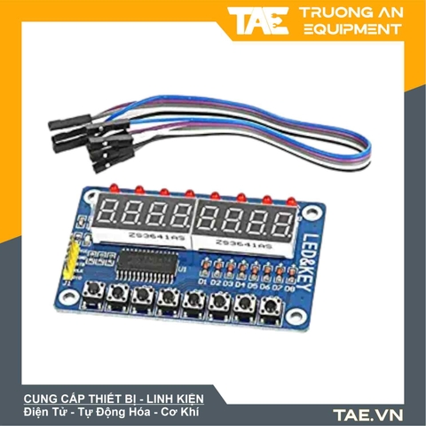 Mạch Điều Khiển Hiển Thị Led & Key TM1638 là sản phẩm được sử dụng để tạo bảng điều khiển, hiển thị trên led đơn, led 7 đoạn và phím bấm thông qua giao tiếp nối tiếp sử dụng IC TM1638. Nó có thể điều khiển, hiển thị đồng thời 8 led 7 đoạn, 8 led đơn và 8 phím bấm mà chỉ sử dụng duy nhất 3 chân giao tiếp từ Arduino hoặc Vi điều khiển, được làm với chất lượng linh kiện và gia công tốt nên cho độ bền cao.