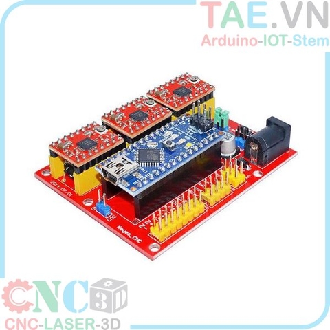 Mạch Điều Khiển Máy CNC Mini CNC Shield V4 là bộ sản phẩm dùng để chế tạo máy cnc mini 3 trục. Với việc sử dụng mạch điều khiển CNC Shield V4 dành cho arduino Nano, 3 mạch điều khiển động cơ bước A4988 hỗ trợ tải động cơ lên đến 2A, bộ sản phẩm này dễ dàng sử dụng, dễ dàng lắp ráp và vận hành với mã nguồn mở có sẵn dành cho arduino. Ngoài ra, khi mua bộ sản phẩm trên, quý khách còn tiết kiệm được chi phí khi so với mua lẻ từng sản phẩm.
