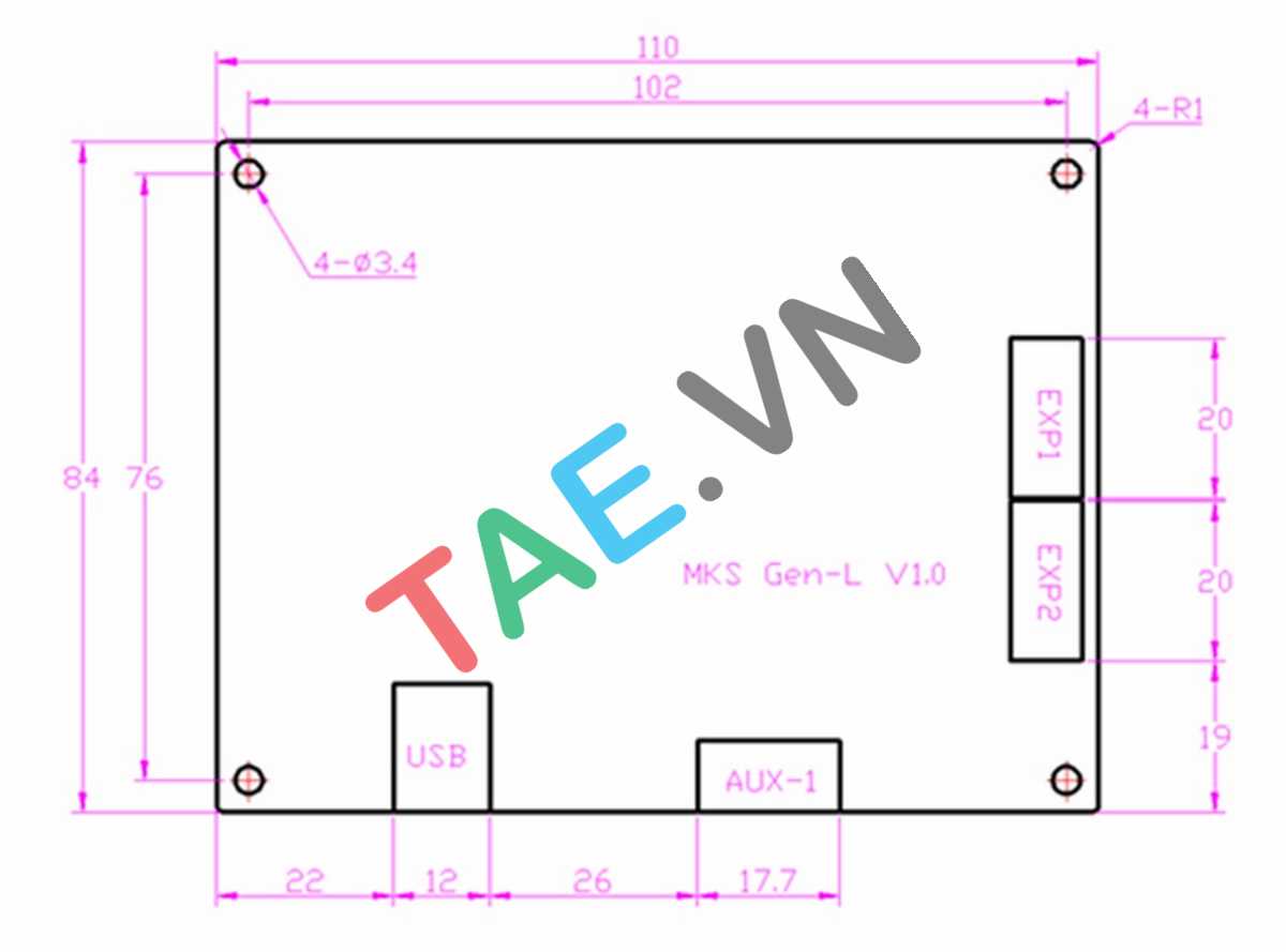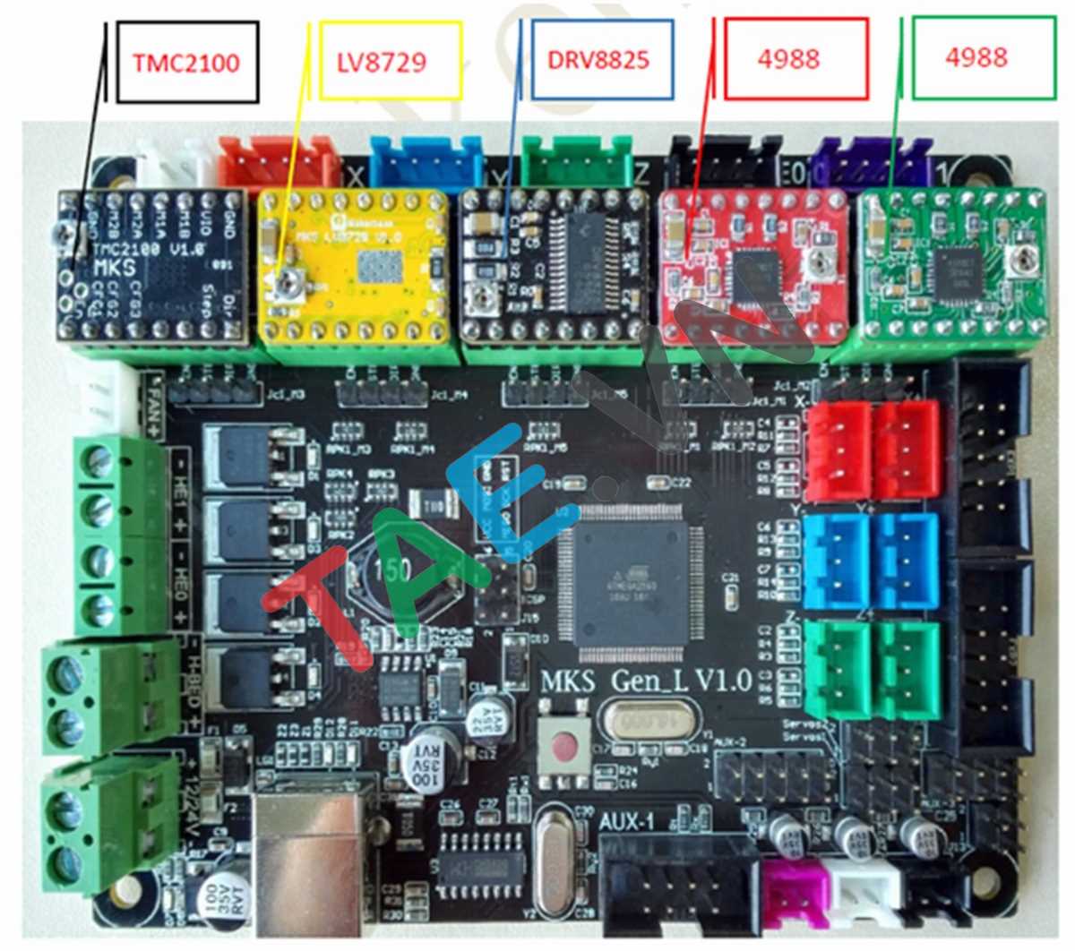 - Hỗ trợ driver: A4988, A4982, DRV8825, TMC2100, LV8729, TB6600..vv