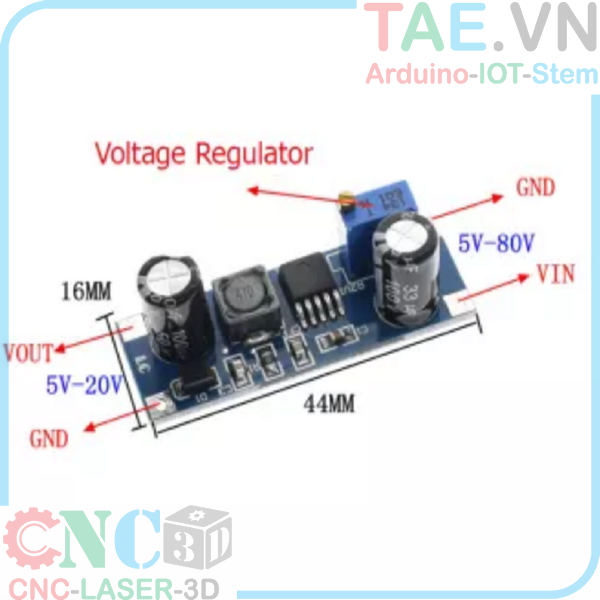 Mạch hạ áp được thiết kế nhỏ gọn với Chip XL7015 với nhiều chế độ bảo vệ, dòng đáp ứng đầu ra tối đa 0.8A.