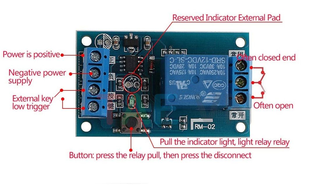 Mạch Kích Relay Bằng Nút Nhấn là sản phẩm mạch kích relay bằng nút nhấn thường được sử dụng trong các ứng dụng chống trộm, đóng ngắt thiết bị bằng nút nhấn..vv. Mạch được thiết kế với nút nhấn ngay trên mạch hoặc có thể đấu nối nút nhấn bên ngoài thông qua domino rất tiện dụng.