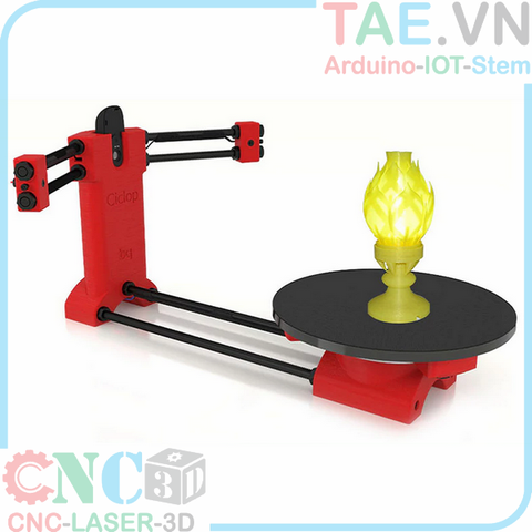 - Giới thiệu: là loại máy quét vật thể 3D mã nguồn mở, phù hợp cho việc nghiên cứu, học tập. Sản phẩm được thiết kế với 1 camera chính diện và 2 đầu quét tia laser, một bàn xoay vật thể giúp cho việc quét vật dễ dàng và tự động. Ngoài ra, nếu nói về độ chính xác thì máy không thể so sánh với các loại máy quét 3D công nghiệp. Nhưng với các sản phẩm, đồ chơi và vật thể không quá phức tạp thì máy cho kết quả quét rất tốt.