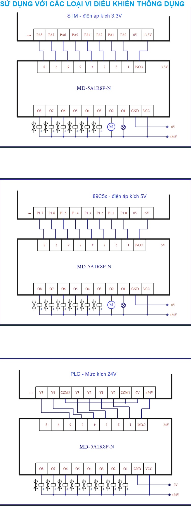 - Điện áp điều khiển: 3.3 - 24VDC
