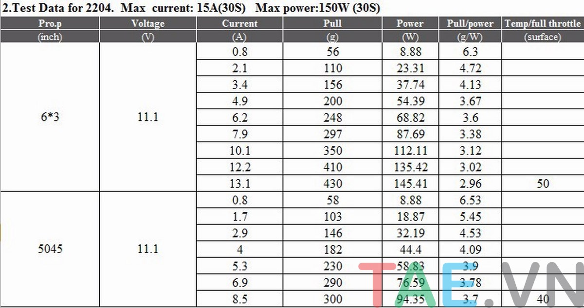 Thông số kỹ thuật Motor Brushless MT2204 KV2300