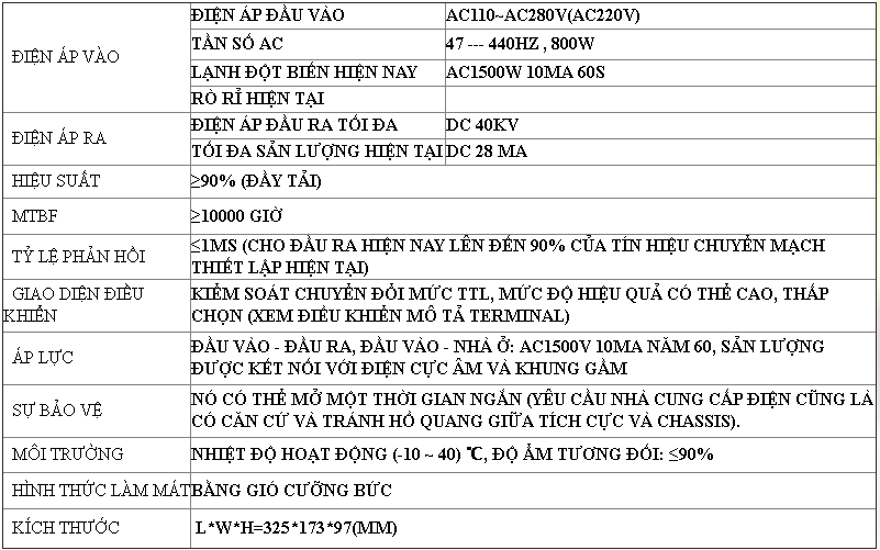 Thông số kỹ thuật Nguồn Máy Laser 100W