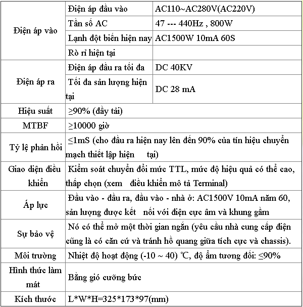 Thông số kỹ thuật Nguồn Máy Laser 150W:
