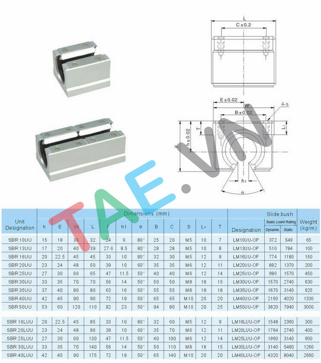 - Loại: Ổ bi trượt vuông có rãnh SBRLUU