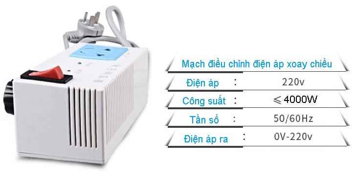 Thông số kỹ thuật Ổ Cắm Điện Điều Chỉnh Điện Áp 0-220VAC 4000W