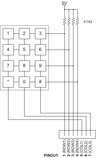 Sơ đồ kết nối với Phím keypad matrix 4x3 nhựa