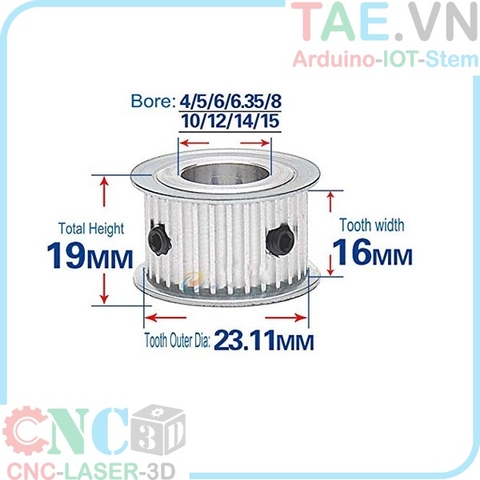 Thông số kỹ thuật Pulley 3M 20 Răng- Bảng 16mm: