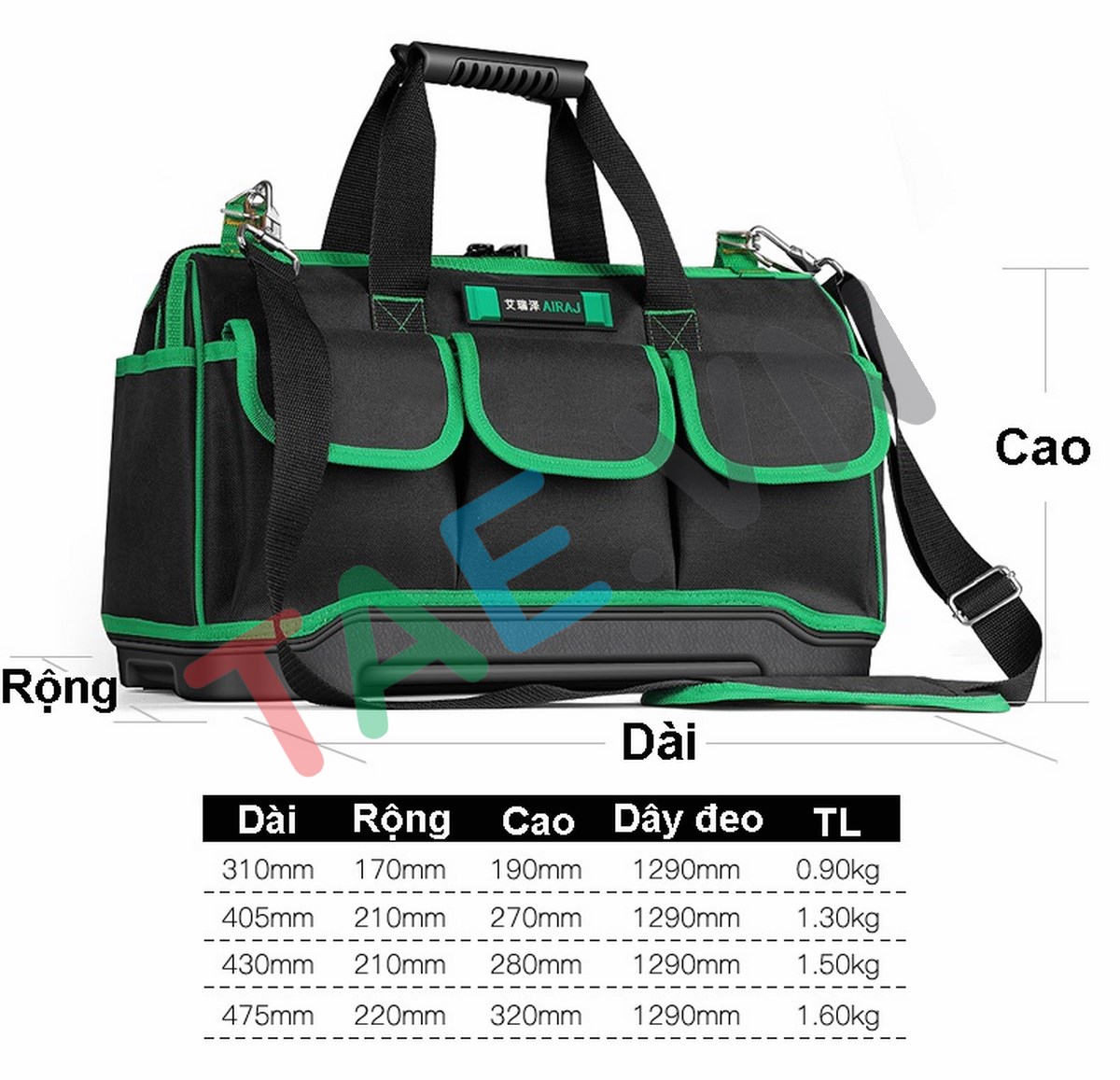 - Đáy túi nhựa chịu lực, chống thấm nước, chống va đập khi rơi, bảo vệ dụng cụ và máy bên trong