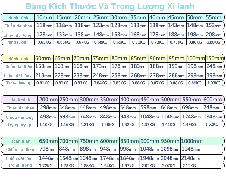 - Chiều dài đẩy hành trình từ 25mm - 1000mm